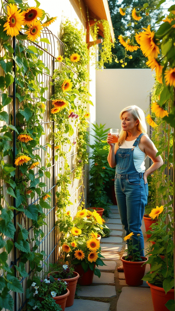 Let climbing vines like morning glories grow up your sunflowers. It creates a layered, lush look. Plus, it gives your garden a wild, natural feel.
