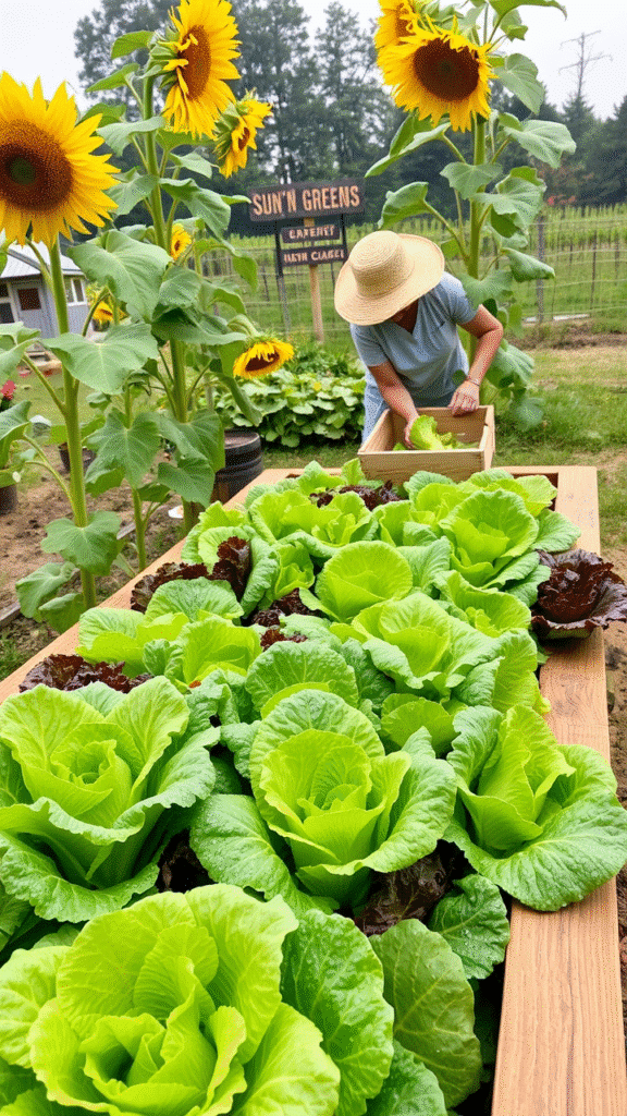 Grow sunflowers alongside lettuce. The sunflowers offer some shade, keeping the lettuce from wilting in the heat. It’s a considerate combo.