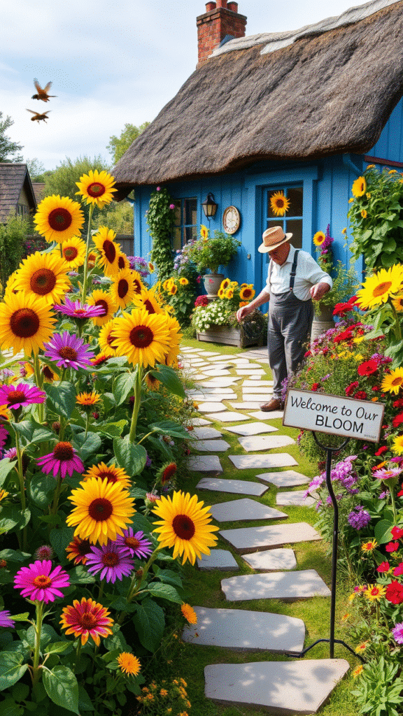 Imagine walking down a path lined with tall sunflowers. Their golden faces turn toward you, welcoming you home. It’s like nature’s red carpet.