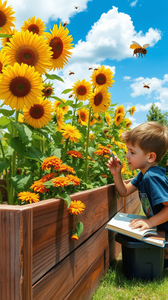 Plant sunflowers near your vegetable garden. They attract pollinators, helping your veggies grow. It’s a win-win.