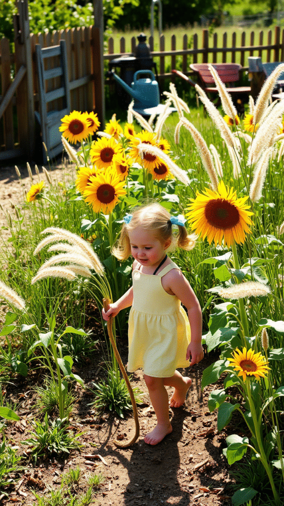Create a maze with towering sunflowers. It’s fun for kids and adults alike. Plus, it adds a touch of whimsy to your garden.