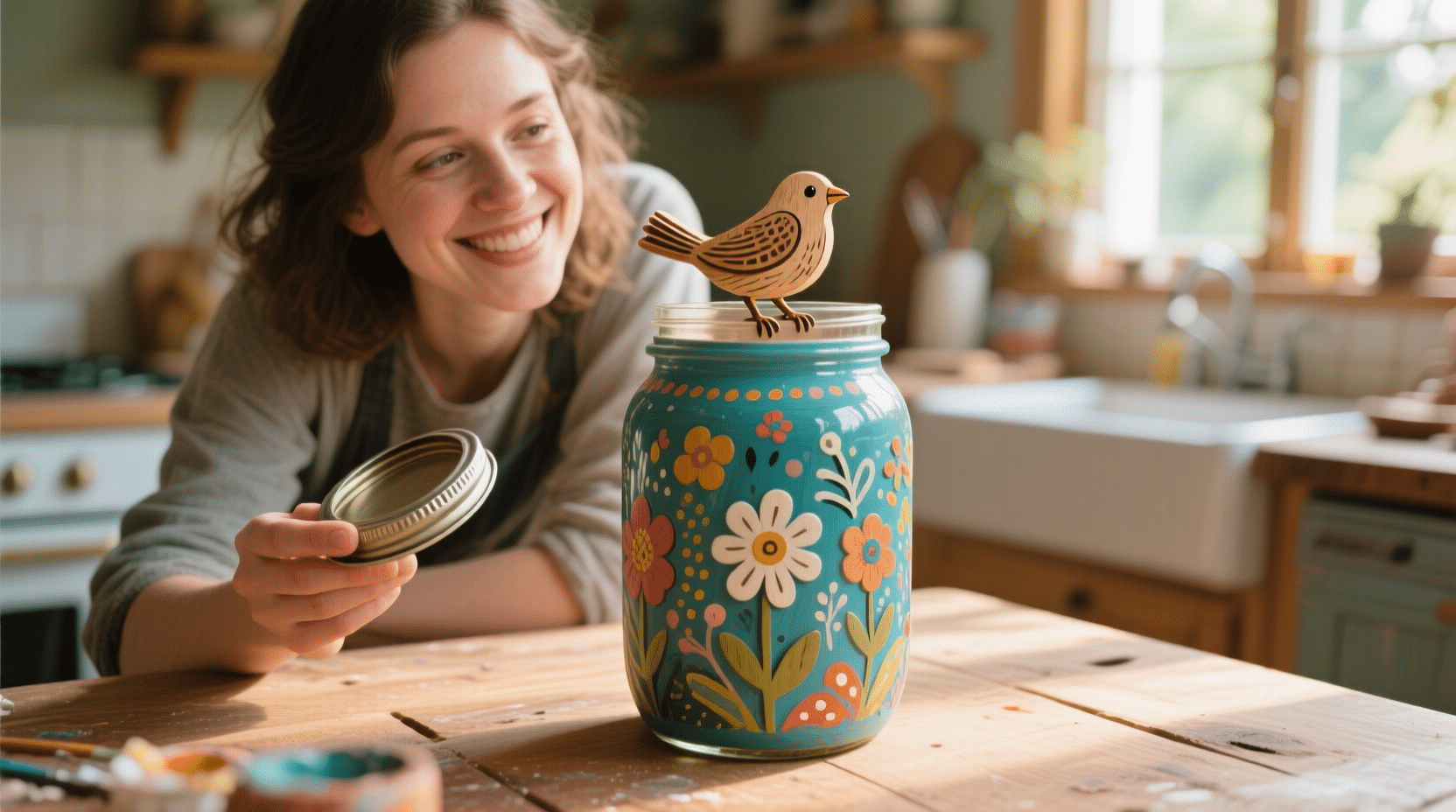 After Painting This Fabulous Design On A Mason Jar She Adds Something That Will Surprise You!